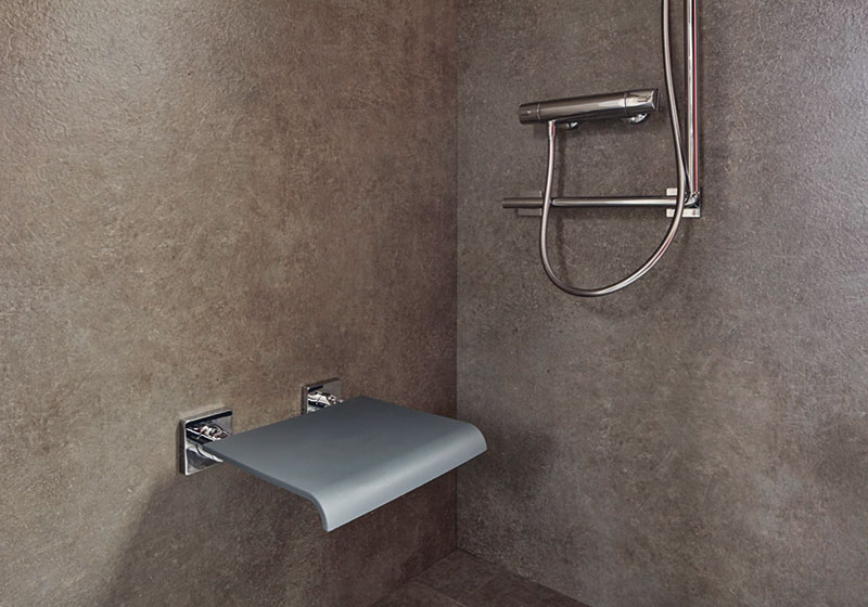 - Behindertengerechte Dusche: schwellenlos mit Duschhocker oder Klappsitz